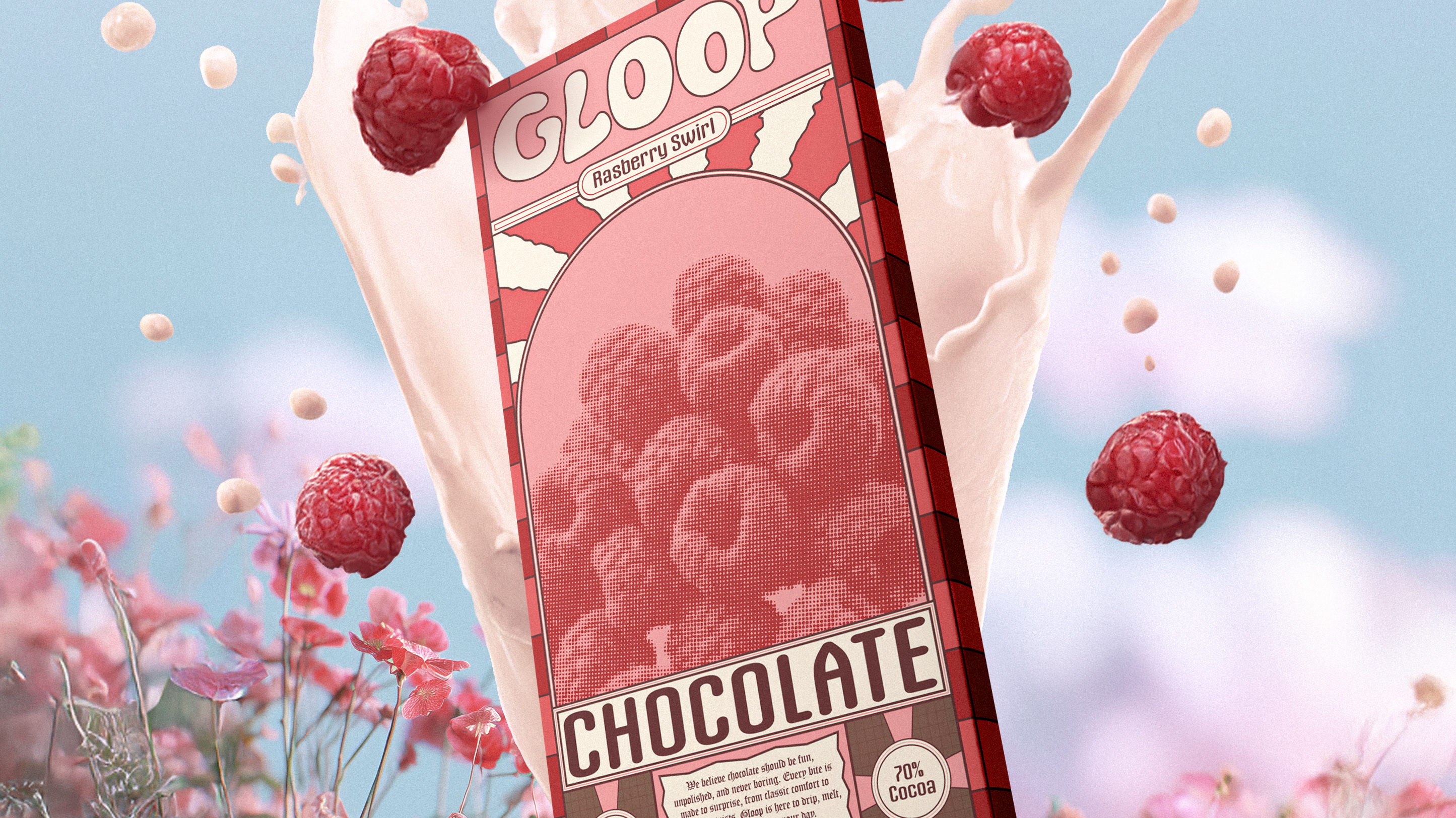 Gloop is a playful, energetic brand created for a range of chocolate products. The project focused on designing packaging that stands out on shelves through bold colors, dynamic typography, and engaging visual textures. Alongside the packaging, a campaign concept was developed to bring the brand to life, highlighting fun, movement, and excitement while connecting with a youthful and adventurous audience.