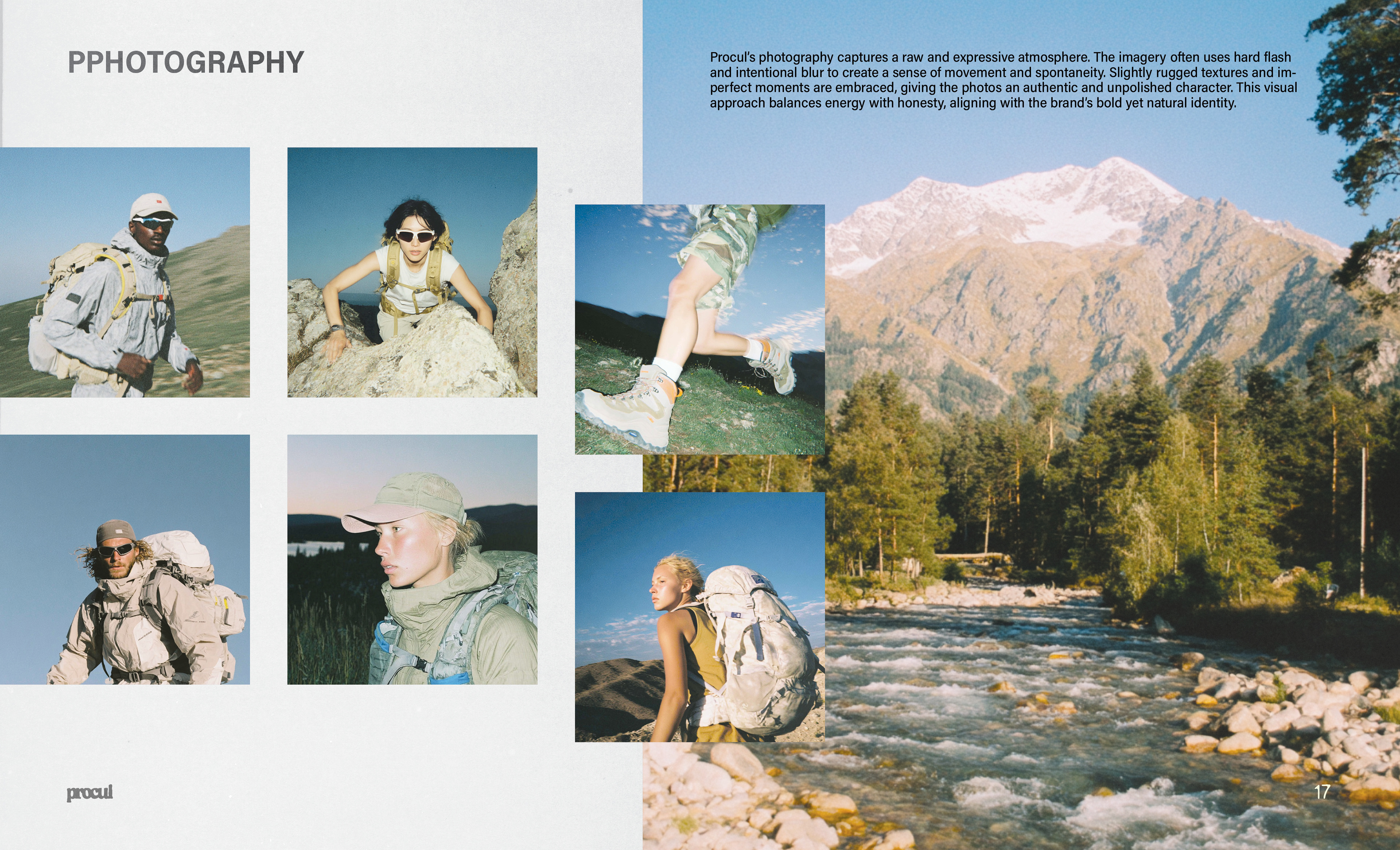 Procul is a dynamic outdoor and hiking brand that blends movement, energy, and a slightly blurred aesthetic to evoke adventure and exploration. The brand focuses on creating products that are both functional and visually striking, appealing to those who seek excitement in the outdoors.